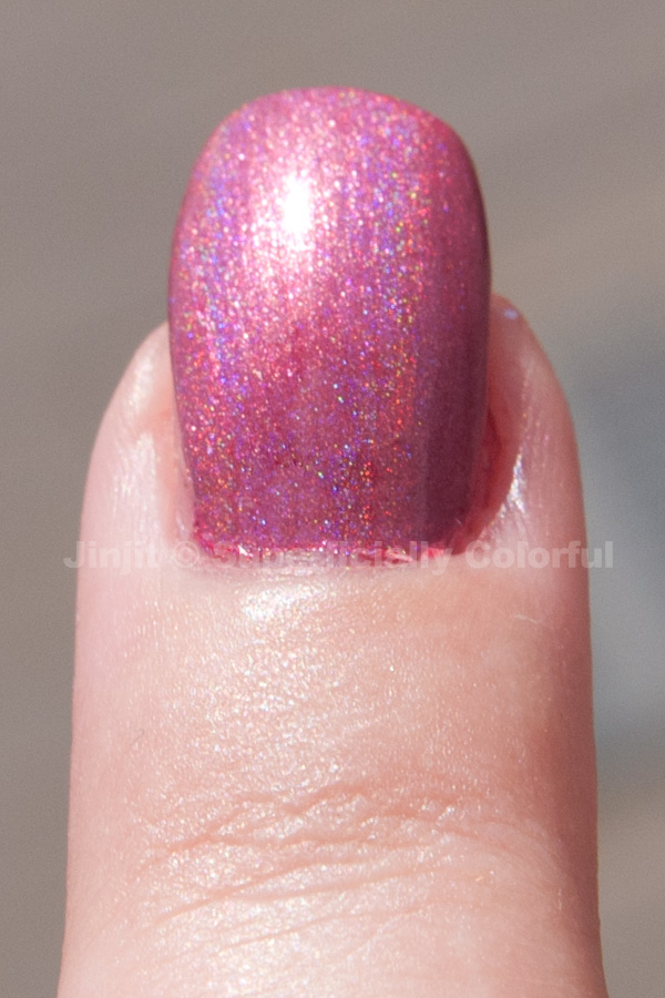 2. half amount red creme (local cheap brand), half amount clear polish, 2 scoops of spectaflair - fine
