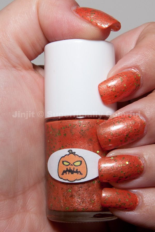I always save the best for last. I don't always know if it is indeed the best until I actually try it, but I choose my favorite and save it for last. Always! So here is my favorite last: The Nail Junkie - Pumpkin.
