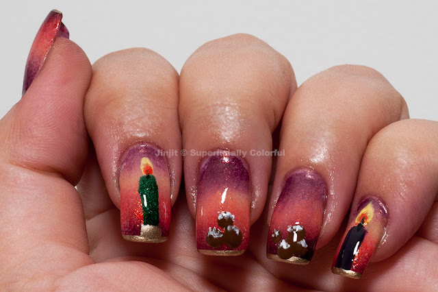 Better late than never comment - adore the gradient and the toppings make this a very special mani. I'll watch out for your Hanukkah mani this year! x